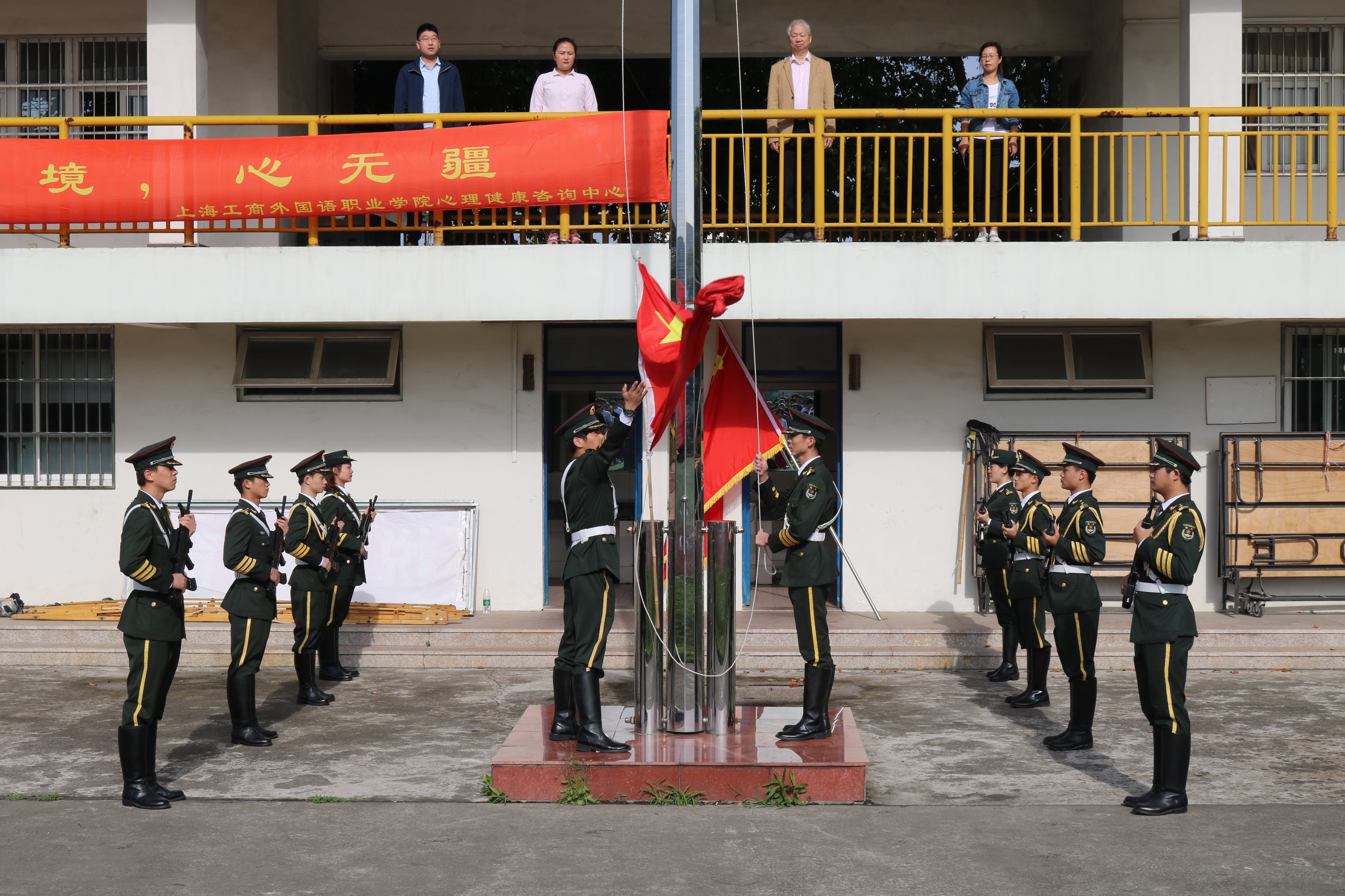 大会第一项是邀请了我院国旗护卫队举行了隆重的升国旗仪式。