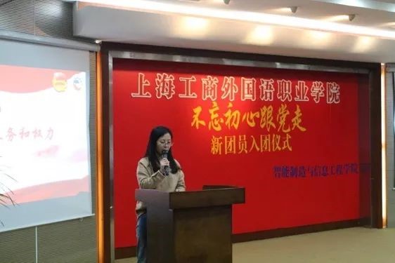 王丽老师为新团员颁发团员证
