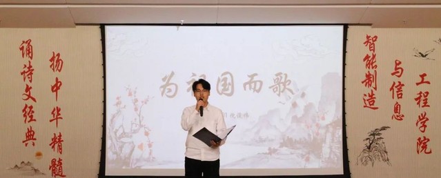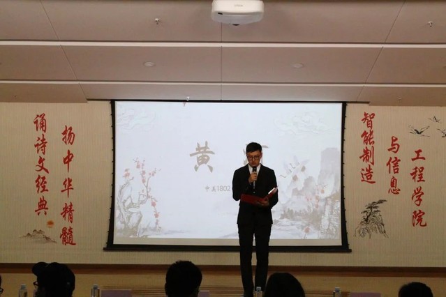 “诵诗文经典,扬中华精髓”诗文朗诵比赛于4月16日晚18点整在我校中区图书馆200人报告厅内成功举办。本次比赛特邀我院党支部委员李飞老师,我院15级分团委书记胡颖老师,我院17级分团委书记王丽老师,上届诗文朗诵冠军得主孙龙毅及播音社社长顾金恒任评委。