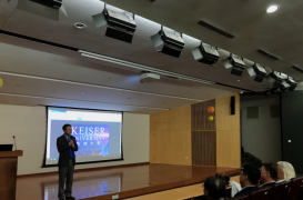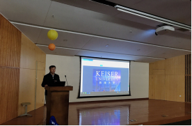 凯泽学习中心主任陈浩老师向同学们老师们致辞。他首先介绍了出席本次迎新会的各位领导和老师。接下来,他详细介绍上海工商外国语职业学院与凯泽大学合作的中美合作信息大数据专业情况,着重介绍了该项目中出国留学攻读本科学位的概况和优势强调与国内升学相比该项目有着非常高的含金量和比较优势——是中国唯一一个中国教育部与美国教育部双认证的中美合作办学项目