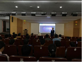 第三个上台发言的是智能学院行政副院长李飞老师,李飞老师详细介绍了中美合作信息大数据专业2019级学生的招生录取情况,他表示中美合作信息大数据专业课程开发体系完备,授课老师水平高超,一直以来受到了广大学生和家长的喜爱与肯定。他希望同学们能好好把握本项目提供的良好教学条件和出国留学的机会,努力学习,把好语言关。最后,他对在场老师和同学们的到来表示诚挚的感谢。