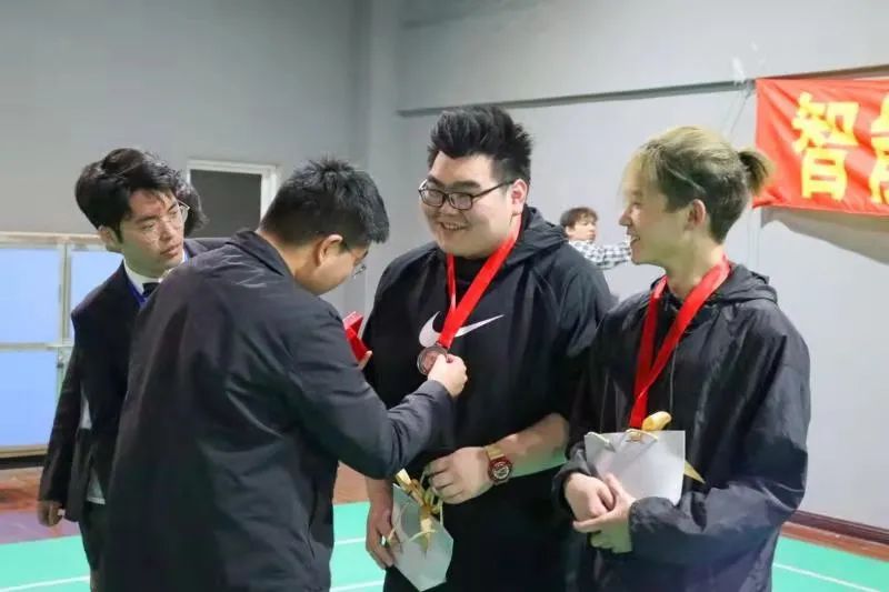 羽毛球大赛圆满结束,随之而来的是激动人心的颁奖环节,我们邀请到了朱春雨老师和李飞老师为我们的获奖选手颁发奖牌、奖状、奖品。