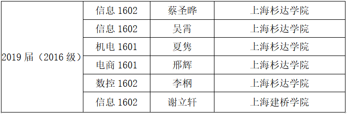 2019年,智能制造与信息工程学院共有6名学生成功考上本科院校。其中5人考取上海杉达学院,1人考取上海建桥学院。