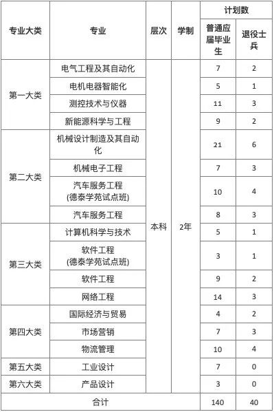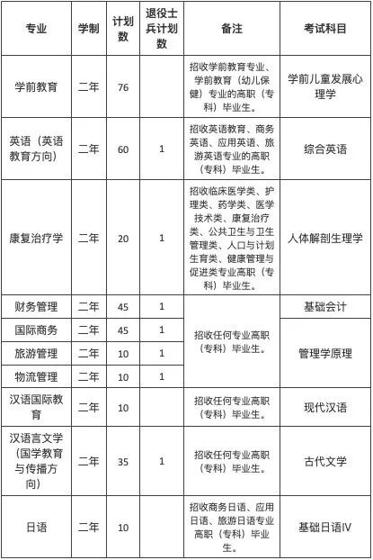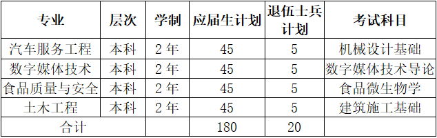 2020年“专升本”招生总计划为180人,其中含退役士兵计划40人。