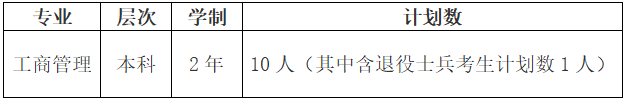 2020年“专升本”招生总计划为10人,其中含退役士兵计划1人。