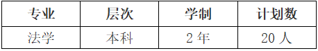 2020年“专升本”招生总计划为20人,其中含退役士兵计划3人。