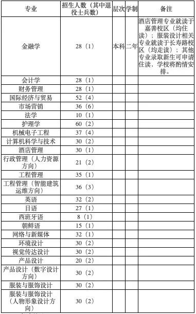 2020年“专升本”招生总计划为200人,其中含退役士兵计划20人。