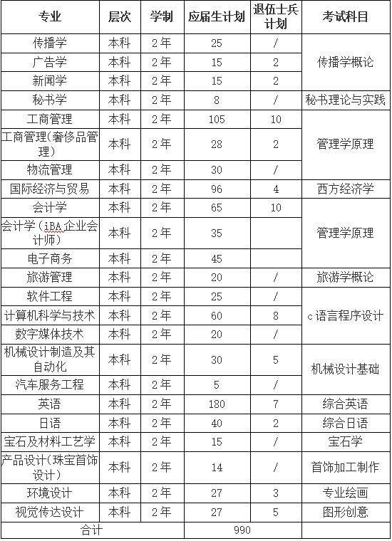 2020年“专升本”招生总计划为990人,其中含退役士兵计划60人。