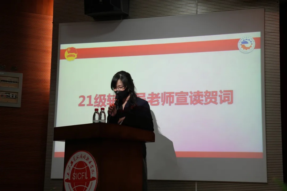 宣誓过后,由分团委书记邬晓燕老师宣读贺词。希望通过今天的换届仪式,能让大家在学生会工作中进一步感受仪式感与归属感,树立前行的目标,在正确的引导下,带着最初的热爱与永恒的感动,为建设更好的明天贡献智慧、发挥才干、实现梦想。