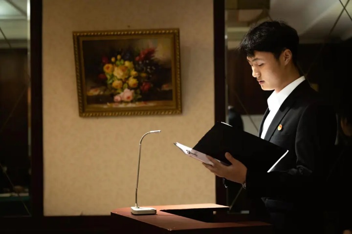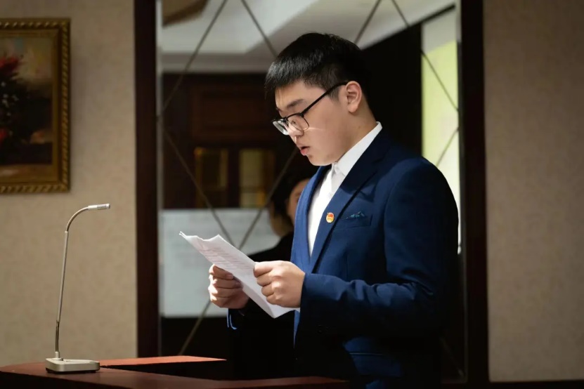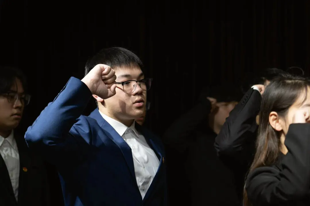 学生会主席高钰坤宣读新晋的共青团团员的权力与义务