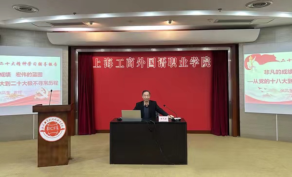 为深入学习宣传贯彻党的二十大精神,着力做好对党的二十大精神的学习阐释,营造奋进新征程的良好氛围,1123日,学校通过上海教育关工委邀请“众鑫有话”讲师团成员,原南京政治学院教授、科社教研室主任,中国特色社会主义理论研究中心主任、上海科学社会主义学会理事张凤奎教授来校,作党的二十大精神专题辅导报告。智能学院党支部组织党员和发展对象积极参加本次党的二十大精神专题辅导报告会。