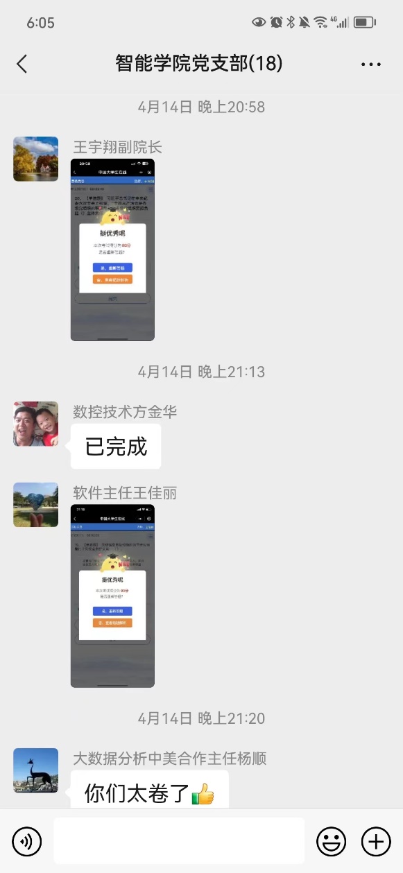 2023年4月10-20日,学院党支部书记唐三三积极安排我院相关教师和学生干部参加廉洁教育知识的学习与答题等系列活动,共有107人参加了本次活动,分别是智能学院党支部全体同志(18人)、预备党员(7人)、学生干部(22人)、中高党学生(33人)、参加团课学生(27人)。