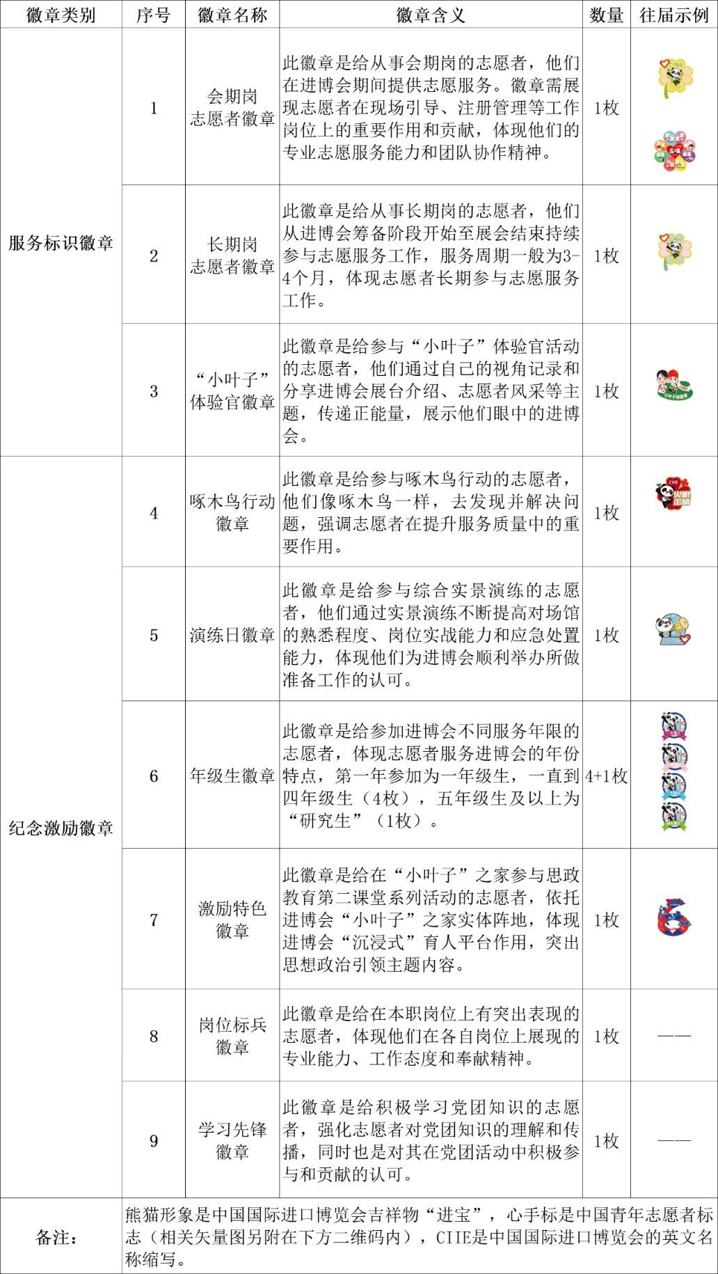 大赛徽章分为服务标识和纪念激励两个类别,旨在激励志愿者在进博会中的积极参与和多元贡献。