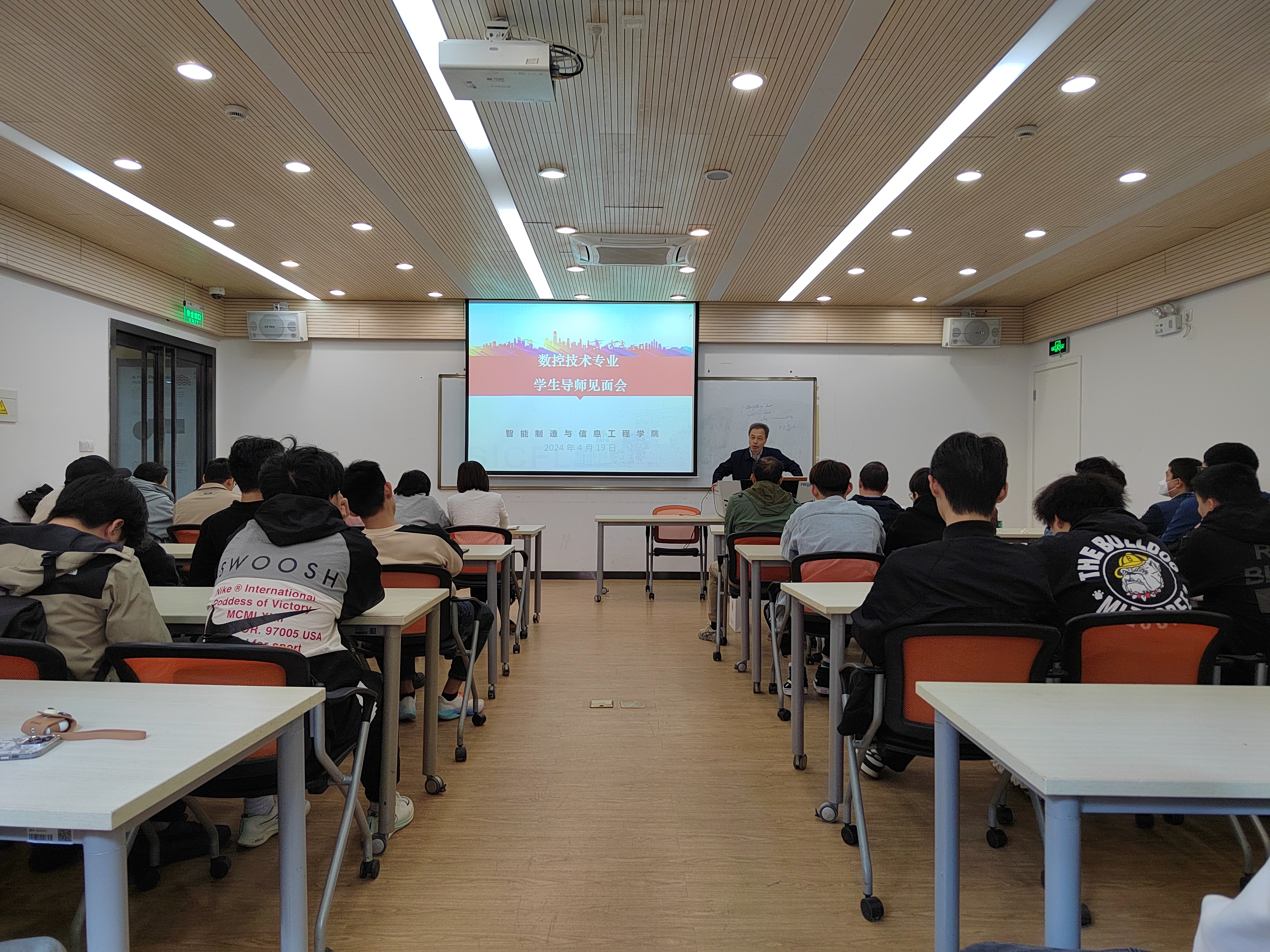 419下午一点,我校智能制造与信息工程学院于4号楼概念教室2举办了23级数控“英才班”学生与企业专家座谈会暨学业导师制启动仪式。出席座谈会的有大师工作室上海工匠王耀生,上海机床厂工艺室主任宋治中、高工陈益军,智能学院张敏良院长、教学副院长王宇翔、行政副院长唐三三、数控技术专业老师、辅导员颜丹红以及23级数控英才班全体学生。座谈会由唐三三副院长主持。