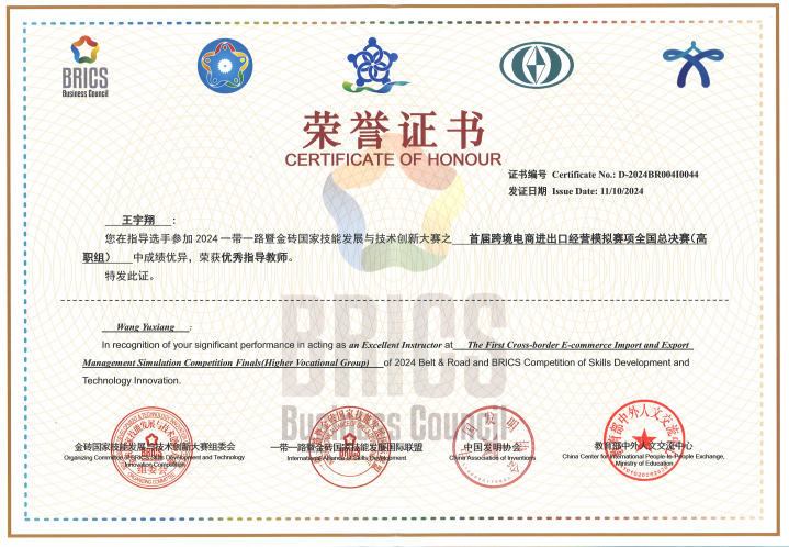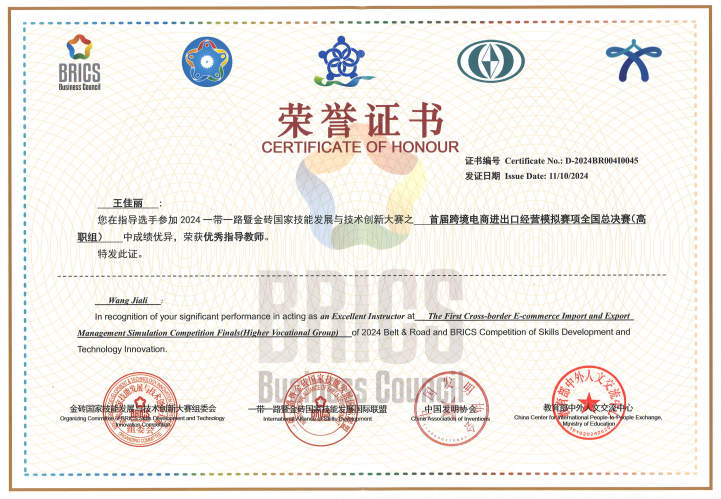11月10日,为期三天的“2024一带一路暨金砖国家技能发展与技术创新大赛首届跨境电商进出口经营模拟赛项国内总决赛”,在漳州职业技术学院圆满落下帷幕。来自全国各省市的99支队伍,共594名学生和老师齐聚一堂,共同见证了这场技能与智慧的较量。我校参赛队伍在此次大赛中表现出色,脱颖而出,荣获高职组二等奖,为我校赢得了高度的认可和赞誉。