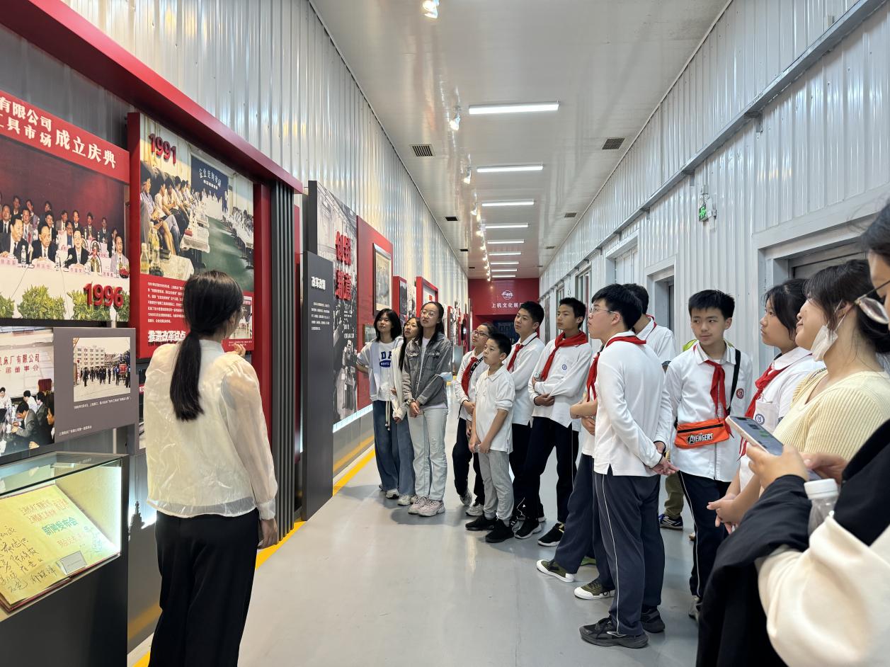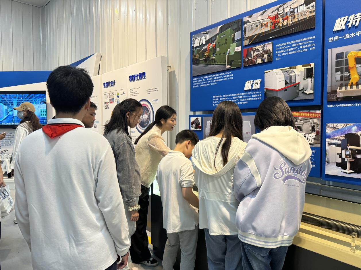 为深入学习贯彻党的二十大精神和习近平总书记关于职业教育的重要指示批示精神,落实新修订的职业教育法和《关于深化现代职业教育体系建设改革的意见》,根据《上海市教育发展“十四五”规划》《上海市职业教育发展“十四五”规划》等要求,做好本市中小学生职业体验工作,进一步促进职普融通,加强劳动教育,为学生搭建一个职业体验的多元学习与互动平台,2024年5月18日,上海工商外国语职业学院智能制造与信息工程学院组织来自上海不同中学的20名中学生走进上海机床厂有限公司,开展了主题为“传播红色文化,传承工匠精神”的职业体验日活动,本次活动的负责人是智能学院党支部书记唐三三,参与本次活动的还有教师代表2023级辅导员颜丹红,学生代表2023级数控技术专业王子亿。