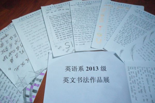 近日,英语系成功举办了2013级“英文书法大赛”。这项活动的开展,旨在丰富同学们的校园生活,培养同学们对英语学习的兴趣与爱好,给大家一个展示自我、秀出个性的舞台,进一步陶冶和激发同学们发现美、认识美、创造美的能力。