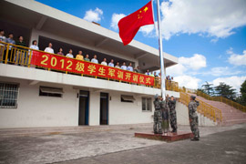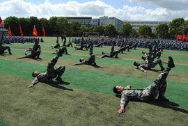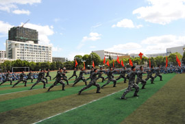 9月1日上午9:00,2012级学生军训开训仪式在学院运动场隆重举行,身着迷彩服的2225名学生将开始为期12天的军训生活。学院院长朱懿心、党委书记王一鸣、党委副书记周春林、各系部正付主任、辅导员、军训部队上海警备区特种警备团31名官兵及我院6名退役兵教官出席了仪式。开训仪式由学工部部长沈李主持。 开训仪式在庄严的国歌声中拉开帷幕,沈李部长介绍了军训团组织机构,朱院长向军训团团长授旗,军训团团长向各营营长授旗。尔后,教官代表作了简短的发言,表示一定要积极配合学院,以良好的军人形象为学生做好表率,言传身教,尽职尽责,科学训练,精心组织,共同提高,圆满完成军训任务。文法系学生代表周雯靓在发言中表示要服从命令,听从指挥,努力发扬“能吃苦、能战斗”的军队作风,铸造优秀品质。周春林副书记作了军训动员讲话,要求同学们以饱满的热情全身心投入到军训中,严格要求自己,勇于自我挑战,在军训中培养团结协作精神、养成良好的生活习惯和严密的组织纪律观念、培养乐观的心态和坚毅的品质,增强忧患意识和民族使命感,让军训生活成为一生的回味。之后,教官进行了军事动作演示,擒拿格斗表演十分精彩,博得全场热烈的掌声和赞叹声,将开训仪式推向了高潮。最后,军训团团长宣布军训开训命令。