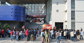10月21日上午,秋阳杲杲,上海工商外国语职业学院图书馆前列队整齐,欢声笑语,学院首届科技节暨艺术设计系师生作品展拉开了帷幕。团市委学校部部长陈立俊、学院院长朱懿心、党委书记王一鸣、副院长潘家俊、副书记周春林等领导出席了仪式。开幕式由学院副院长朱士昌主持。