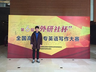 12月9日,第六届“外研社杯”全国高职高专英语写作大赛总决赛暨全国高职高专英语写作教学论坛在北京举行。全国24个省、市、自治区的200余名特等奖获奖选手参加了总决赛。经过评委一周的紧张评阅,我系英语1401班王聪同学斩获英语专业组一等奖,这是继他在上海市高职高专英语口语大赛和阅读大赛中取得佳绩后的又一荣誉。