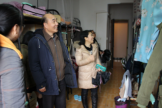 随后,学校领导与老师来到学生宿舍慰问困难学生,为困难学生送去温暖。