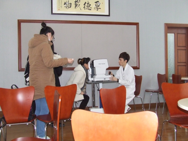 日前,上海工商外国语职业学院工会邀请上海爱尔眼科医院医生为师生进行眼科免费检查。服务内容包括视力、眼镜度数、眼角膜结膜检查以及电脑验光等,一些青年学生眼镜与眼睛近视度数不对,得到了纠正;有的眼疾被及时发现。现场,医务人员还传授了眼睛卫生保健知识,并发放了宣传资料,使师生受益匪浅。
