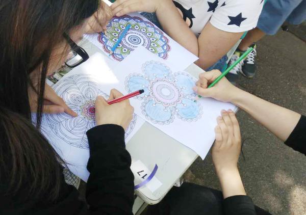 5月17日,我院心理健康咨询中心在中区1号楼医务室门口开展心理健康月“创意表达,放飞心灵”系列活动之曼陀罗绘画。活动由心理老师陈江媛、过晓丹组织,各系心理委员和心理社成员协助。