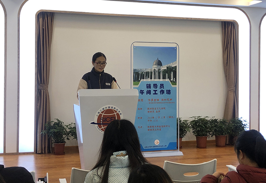 12月12日,由学生处主办的辅导员“午间工作坊”第四期学习交流活动在学校四号楼大学生活动中心辅导员工作室举行,由欧洲语言文化学院辅导员庄芹老师主讲,主题为“修身自律·润物无声——辅导员日常管理服务中的经验分享”。学生处处长陈瑜、副处长黄慧华,各院系学生工作负责人及辅导员出席活动。