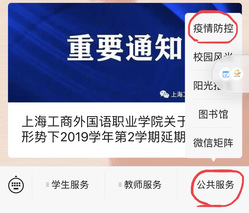第一步:微信扫码关注上海工商外国语职业学院服务号;