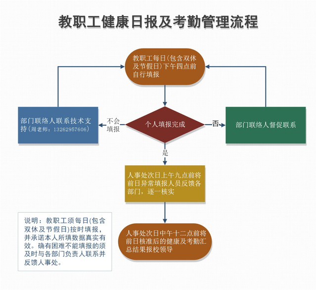 3、人事处于次日中午十二点前将前日核准后的健康及考勤汇总结果报校领导。