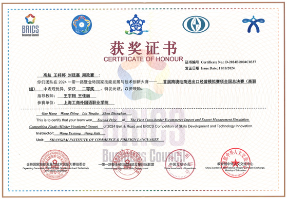 11月10日,为期三天的“2024一带一路暨金砖国家技能发展与技术创新大赛首届跨境电商进出口经营模拟赛项国内总决赛”,在漳州职业技术学院圆满落下帷幕。来自全国各省市的99支队伍,共594名学生和老师齐聚一堂,共同参与和见证了这场精彩的赛事。我校参赛队伍在此次大赛中表现出色,荣获高职组二等奖,学校获评优秀组织奖。
