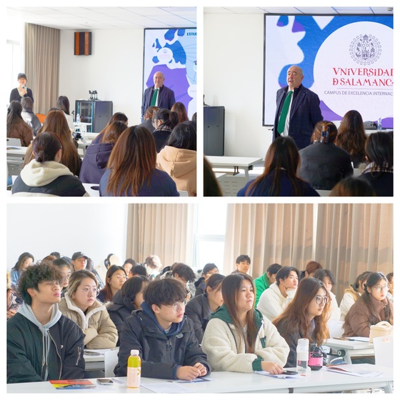 会谈圆满结束后,Juan Eguiluz Pacheco教授为外国语言文化学院西班牙语系的学生献上了一场精彩的专题讲座。他全面介绍了萨拉曼卡大学的历史底蕴、文化特色、学术资源及留学政策,并鼓励在场学生前往萨拉曼卡大学深造,以拓宽国际视野,增强语言和专业能力。作为欧洲历史最悠久的学府之一,萨拉曼卡大学拥有丰富的教学经验、优越的教育资源,特别是在西班牙语教学及国际化人才培养上具备显著优势。讲座结束后,同学们纷纷表示讲座不仅使他们领略了西班牙语言文化教育的独特魅力,进一步激发了语言学习的热情与动力,为未来的留学规划提供了宝贵的参考。