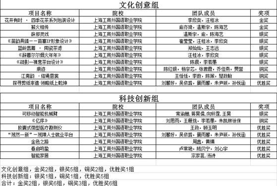 为挖掘和展示上海职业院校学生的创新思维和实践能力,达到以赛促教、以赛促学、以赛促创的目的,11月16日,市教委牵头在徐汇滨江组织开展第二届上海市职业院校学生创新创意大赛总决赛。本次大赛自9月启动以来,学校招生就业处与团委共同组织开展校内相关赛事。经校级初赛、市级复赛等环节,我校有多个团队脱颖而出,入围决赛。决赛当日,张辉副校长带队,郑舒文、龚国辉两位担任指导老师,最终我校学子参赛状态良好、现场表现出色,分别在文化创意组斩获2金5银2铜1优胜奖,在科技创新组喜获1银1铜5优胜奖,学校荣获优秀组织奖。