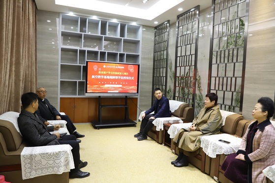 滕浩总经理和姚秀平校长一同为航空教学基地揭牌