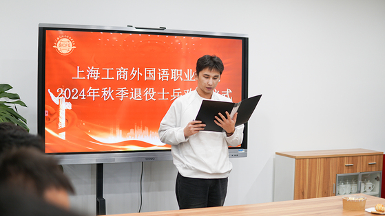 校领导黄正向退役士兵致欢迎辞。他对退伍大学生表示欢迎同时也提出了期望,希望同学们能够早日适应身份的转变,在今后的校园学习和生活中继续保持军人本色,勇敢面对挑战,不断超越自我,发挥退伍大学生的先锋模范作用;期待同学们在学业上追求卓越,在实践中锤炼能力,在创新中展现才华,在接下来的日子里收获丰富的知识技能、深厚的友情和美好的未来。