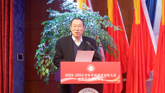 最后,校领导黄正讲话。他向所有获得表彰和奖学金的同学们表示热烈的祝贺和衷心的祝愿。他勉励同学们要怀揣理想、敢于担当、吃苦耐劳、勇于奋斗,以乘风破浪的勇气和无畏的精神,为建设中国特色社会主义现代化强国贡献自己的青春力量。