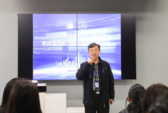 为进一步提升学生记者团新闻摄影水平,加强学生宣传工作队伍建设,12月17日下午,2024年两校通讯员、宣传员新闻宣传能力提升培训班第二讲《漫谈新闻摄影技巧》专题培训会在上海思博职业技术学院5C数字影像实训室举行。本次培训会邀请了国家一级摄影师卢卫平授课,工商外和思博两校学生通讯员及记者团成员参加培训。