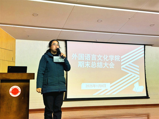 1月8日,外国语言文化学院在图书馆报告厅召开全体教职工期末总结大会。大会回顾了2024年学院在教学、学工、科研、产教融合等各方面取得的成绩,并对新学年的工作进行全面规划和部署。