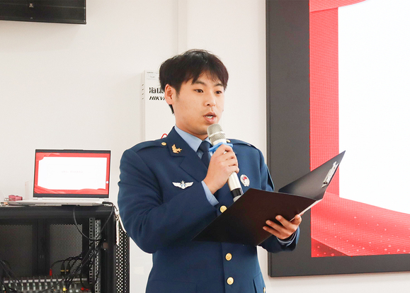 商学院汪江涛同学作为退伍老兵代表发言。他用朴实的话语,回顾了自己的服役经历,并结合自身经验畅谈了服役期间的收获与感悟,同时向新兵战友送上了最真诚的祝福。