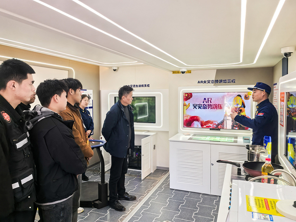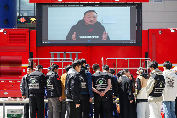 在消防知识讲解环节,消防人员现场演示灭火器、消防战斗服等消防装备的正确使用方法,并邀请师生亲身体验操作,使大家在实践中掌握灭火、逃生等消防安全知识;此外,还用VR设备模拟火灾发生时的场景,指导师生如何迅速、有序地疏散逃生,让大家对火灾应急处置有了更直观的认识。