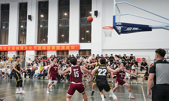 在校领导黄正精准的开球弧线中,篮球联赛正式启幕,两校首届体育文化节也同步拉开帷幕。随后,体育学院篮球队与工学院篮球队展开激烈对决,精彩的比赛吸引了众多师生前来观看,现场气氛热烈非凡。