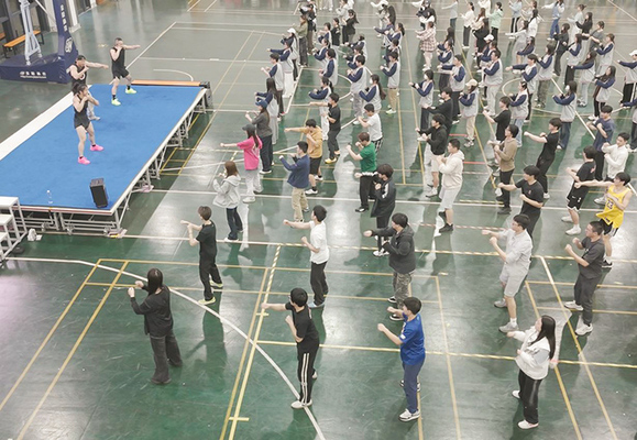 启动仪式上,知名健身品牌莱美国际的两位星级教练员带领150余名学生表演团队,以极具冲击力的莱美搏击操点燃全场。伴随着动感十足的音乐节拍,表演方阵挥拳、踢腿,刚劲有力的动作与青春洋溢的面庞交相辉映,将现场气氛推向沸点,不少学生情不自禁起身跟跳,充分展现了体育运动的感染力。