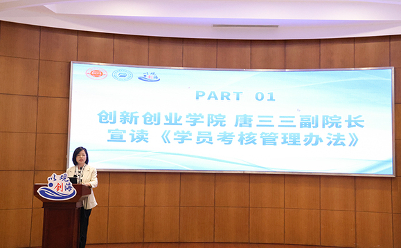 开营仪式现场,创新创业学院副院长唐三三宣读了《观海创业训练营学员考核管理办法》,从学习管理制度、考勤和请假管理制度、班委会管理条例、优秀学员选拔规则四个方面对本次训练营学习过程和结业要求做了详细说明。本次创业训练营构建形成过程性考核+成果导向评价的双维管理体系,通过专家理论授课、商业计划书迭代升级、项目路演等实践环节量化考核,确保训赛结合、学用贯通的教育理念落到实处。