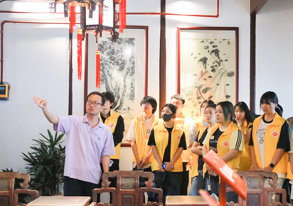 培训过程中,专业老师进行了细致讲解,故居中一件件图文并茂的史料展现了黄炎培先生“理必求真、事必求是、言必守信、行必踏实”的一生。社员们了解到“内史第”历史上名人辈出,不仅黄氏子弟在此诞生,宋庆龄姐弟和胡适也和“内史第”有着深厚的渊源。在知识储备方面,培训老师对社员们提出了明确要求;在语言表达上,老师现场示范如何将史料转化为生动的叙事;并着重强调语音语调的抑扬顿挫,避免平铺直叙。