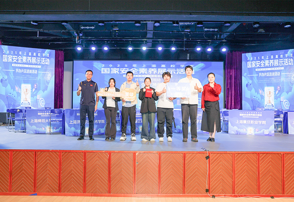 5月23日下午,以“国家安全在我心 安全素养伴我行”为主题的2025年上海市高校学生国家安全素养展示活动民办片区选拔赛在上海震旦职业学院举办。我校商学院5名同学组成的参赛队,在学校后保处副处长严明(领队)与商学院学工办主任严丹芬(指导教师)带领下参赛,最终以520.6分的总成绩荣获此次选拔赛一等奖,直接晋级市级展示(第二阶段)。