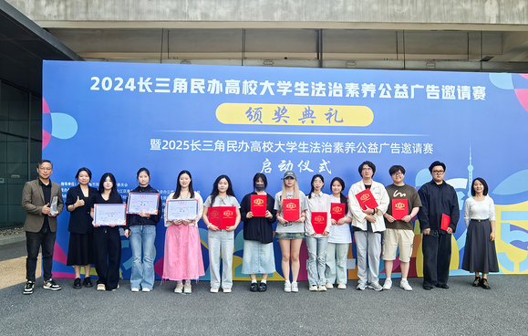 当创意艺术邂逅严肃法典,一场别开生面的法治文化盛宴拉开帷幕。5月30日,“2024长三角民办高校大学生法治素养公益广告邀请赛颁奖典礼暨2025长三角民办高校大学生法治素养公益广告邀请赛启动仪式”在上海视觉艺术学院举行,我校师生团队在此次赛事中斩获多项大奖,为学校赢得了荣誉。