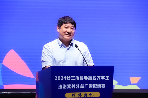 颁奖典礼上,上海市民办教育综合党委副书记江鸿波在讲话中表示,恰逢端午时节,屈原作为中华传统文化中具有法治精神象征意义的历史人物,是青年一代在新时代坚定理想信念、传播法治理念的精神源泉。他指出,赛事不仅推动了高校课程思政育人与社会法治传播的深度融合,也在潜移默化中让法治理念深入人心。他鼓励青年学生严格守法,尊重社会公序良俗,坚守公平正义;加强学法,做好“知法懂法”,践行“守法用法”;积极参与普法宣传活动,为学习贯彻习近平法治思想、习近平文化思想,推进国家法治进步贡献青春力量。