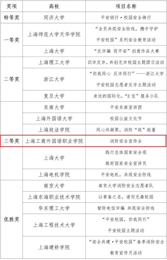 5月23日下午,第三届上海市大学生平安志愿者品牌项目育苗活动结项评审会在上海大学举行。来自沪上及长三角地区的17所高校通过线上线下相结合的方式,集中展示了校园安全治理创新成果。我校大学生平安志愿者支队精心打造的《消防安全会》校园品牌项目,在本届上海市大学生平安志愿者品牌项目育苗活动中荣获三等奖。