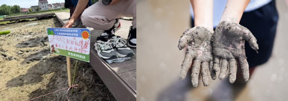 讲解结束后,同学们迫不及待地换上防水胶鞋,走进水田开展实践。初次下田,同学们既兴奋又紧张,但在实践中逐渐适应了节奏,认真地将一株株嫩绿的秧苗插入水田中。经过一番努力,原本空旷的水田逐渐被一排排整齐的秧苗覆盖,呈现出勃勃生机。
