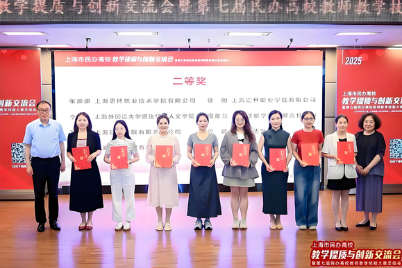 近期,在第七届上海市民办高校教师技能大赛复赛中,我校张娜娜、付童两位老师凭借出色表现,从众多选手中脱颖而出,分别斩获高级组和中级组二等奖。6月27日,两位获奖教师代表学校参加了在天华学院隆重举行的第七届民办高校教师教学技能大赛颁奖典礼。副校长张学龙出席了活动,并与两位获奖教师合影。